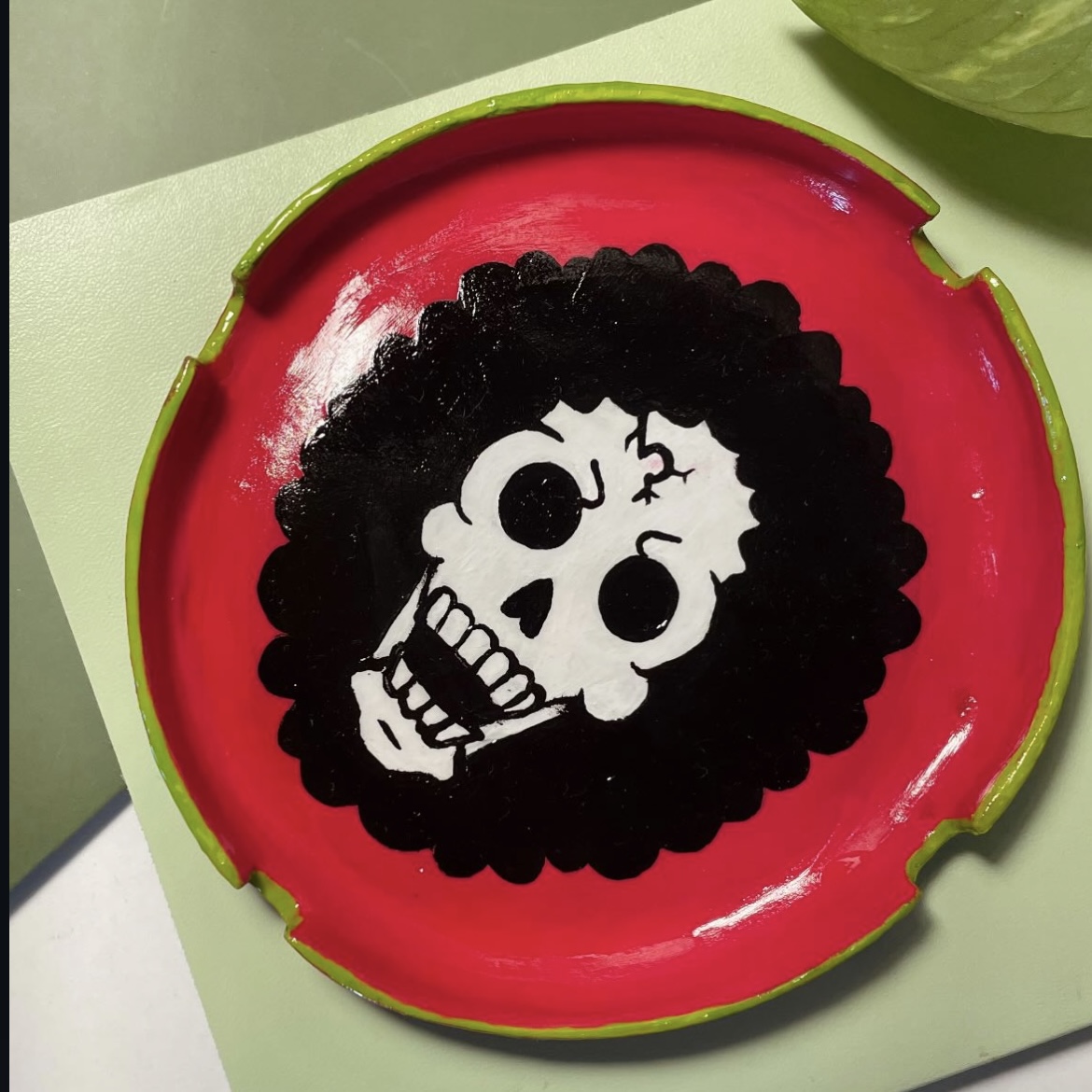 DisponívelAdicione personalidade à sua sessão com este cinzeiro incrível do Brook, o Músico dos Chapéus de Palha. Com um fundo vermelho intenso e bordas em verde, a arte destaca o visual icônico do esqueleto mais amado dos animes.